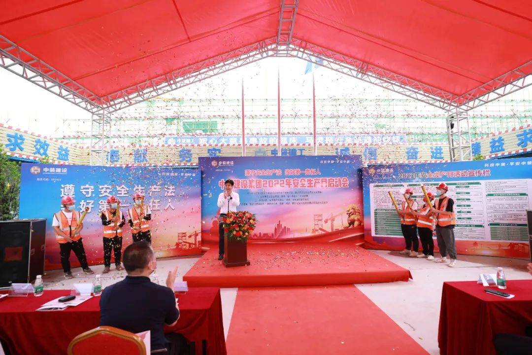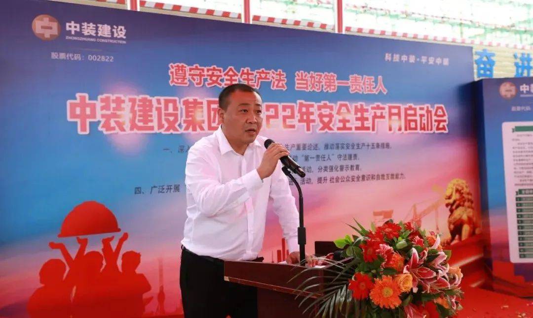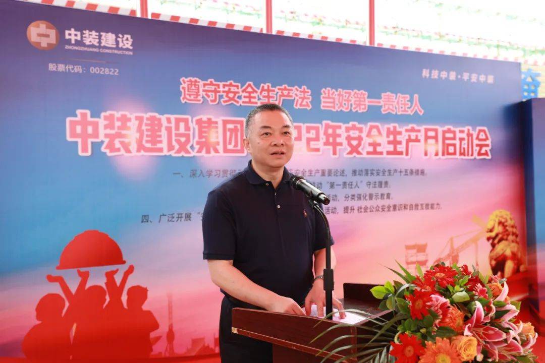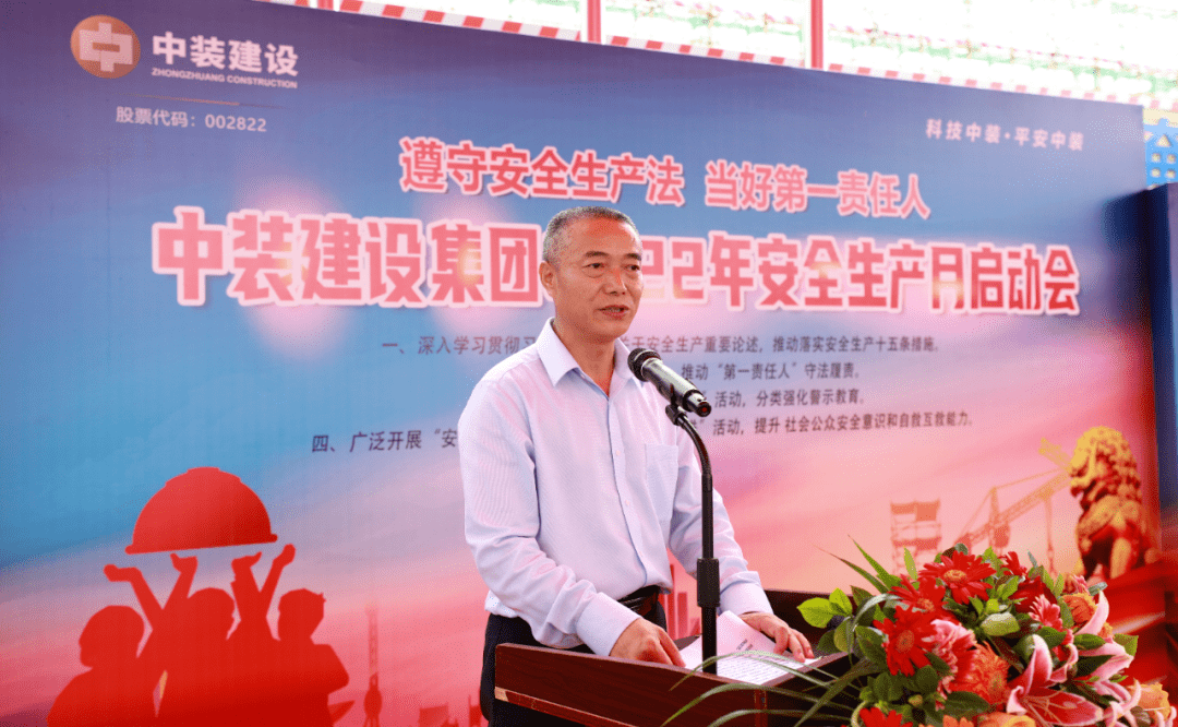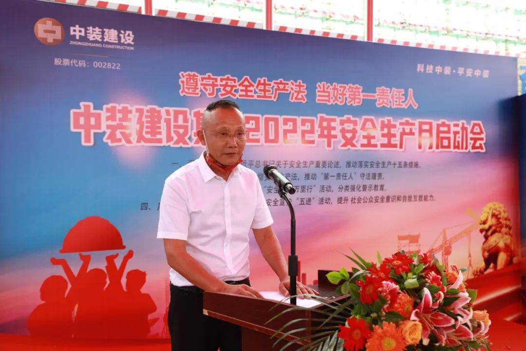 中装建设副总裁黎文崇宣布中装建设2022年“安全生产月”活动正式启动,拉开了本次“安全生产月”活动的序幕。
